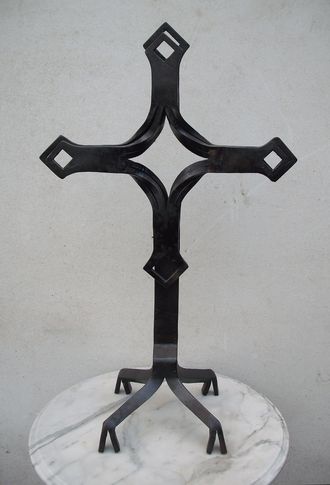 Detail Altarkreuz: das griechische und lateinische Kreuz gehen ineinander über (spezielle Spalttechnik).