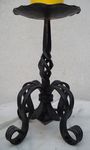 Kerzenständer geschmiedet; Höhe 300 mm. Füße und Zwirbel gespalten, Stabende vierkant angestaucht und pyramidal abgeschmiedet.